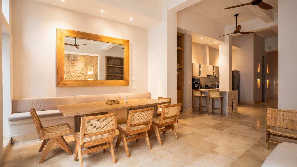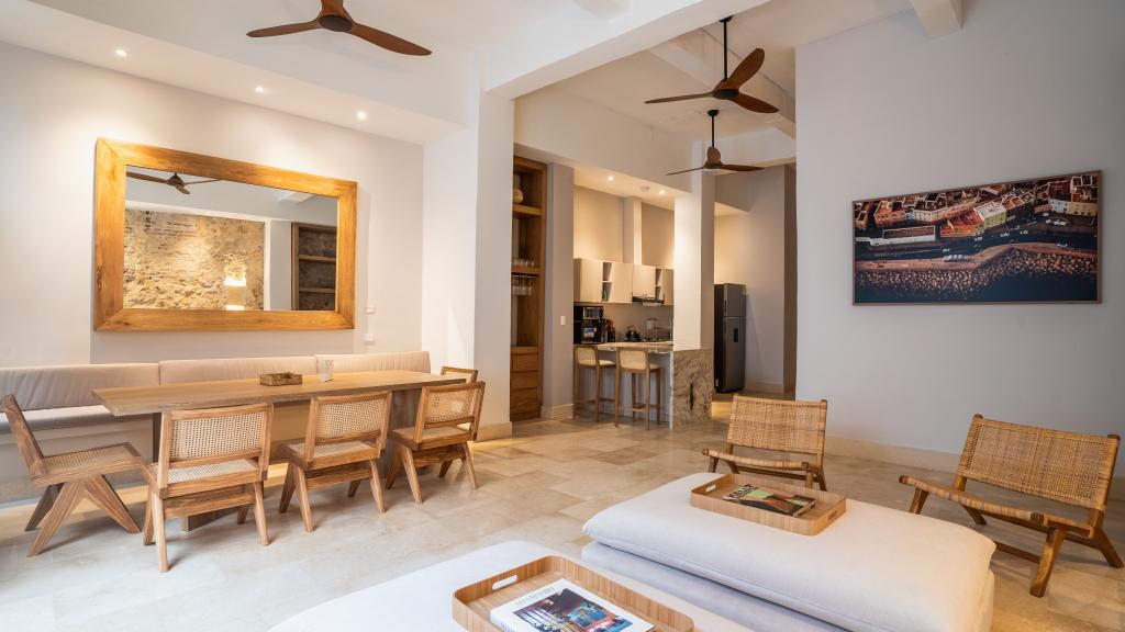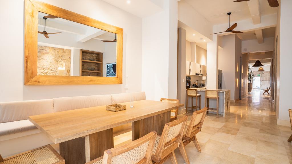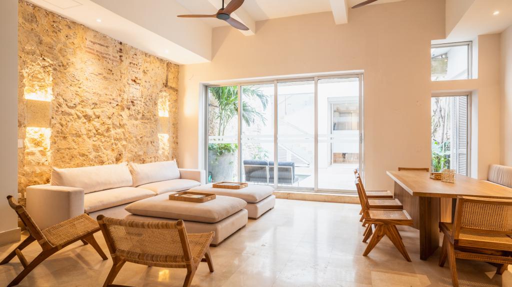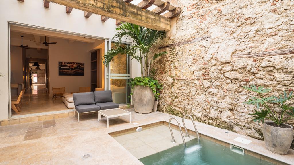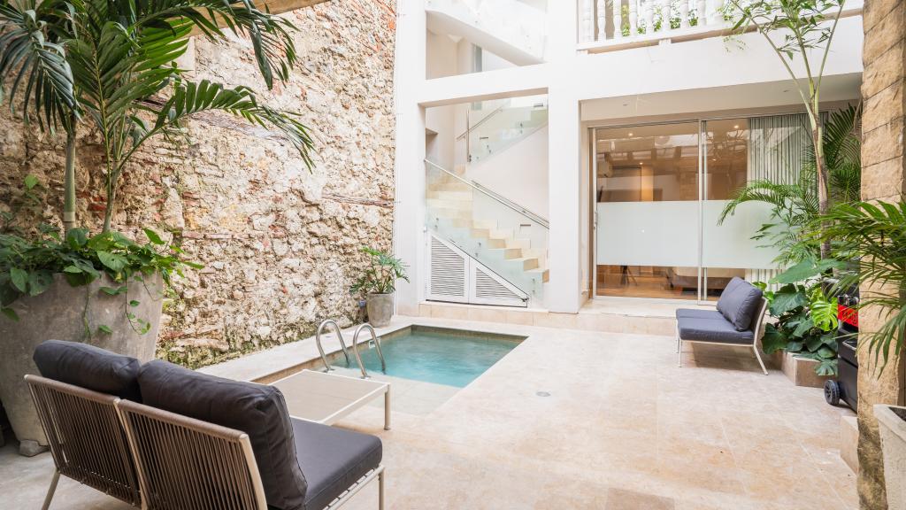 Casa Catalina de Mokaná se encuentra en el corazón de la ciudad amurallada de Cartagena, a pocos pasos del histórico Teatro Adolfo Mejía y rodeada de los mejores restaurantes, bares y atractivos turísticos de la ciudad. Es una casa colonial completamente remodelada que conserva su encanto original con toques modernos. Con capacidad para 16 personas, ofrece 6 habitaciones con baño privado, clóset y caja de seguridad, además de espacios comunes como sala de estar, comedor, cocina equipada, patio con asador, terraza, piscina y jacuzzi climatizados.