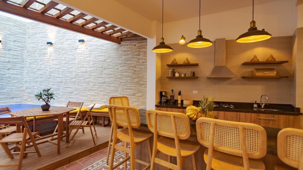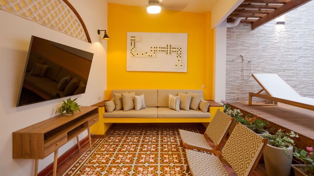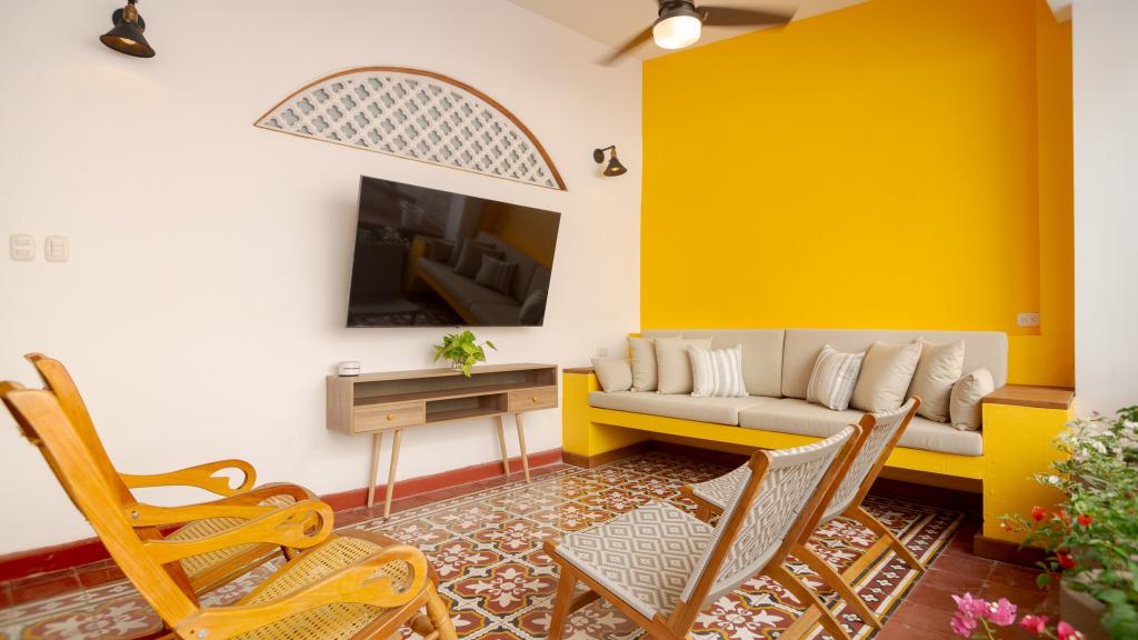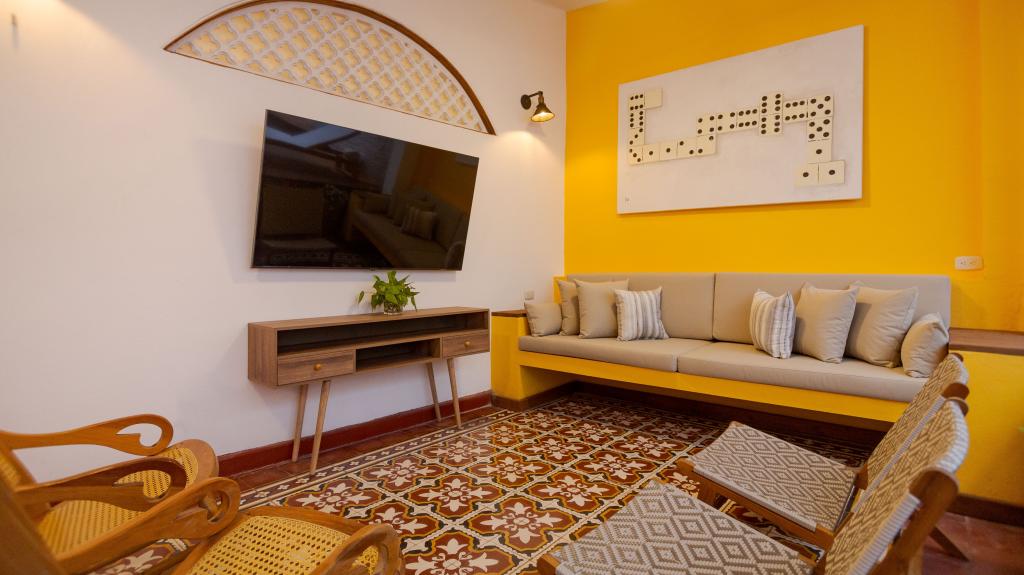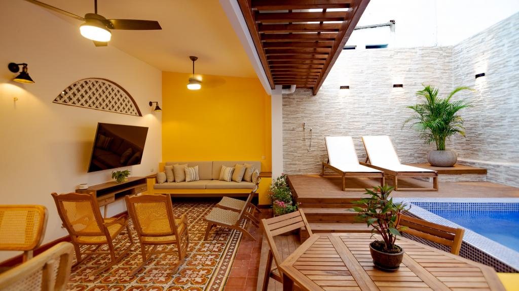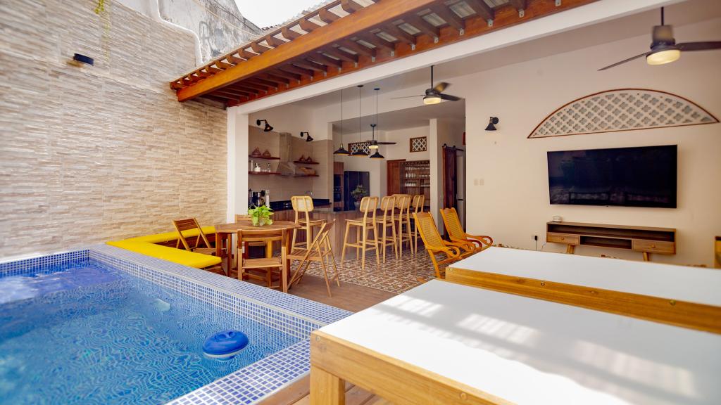 La casa ha sido remodelada combinando el encanto colonial con un estilo moderno, ofreciendo así comodidad y autenticidad en cada espacio. Cuenta con sala, comedor y cocina de concepto abierto, además de una refrescante piscina para disfrutar en cualquier momento del día. Sus habitaciones están equipadas con aire acondicionado, Smart TV, ropa de cama completa, armarios y amenities para garantizar una estadía placentera. Con WiFi en todas las áreas y ambientes pensados para el descanso, Casa Marta es la opción perfecta para quienes buscan vivir Cartagena desde su lado más bohemio y auténtico.